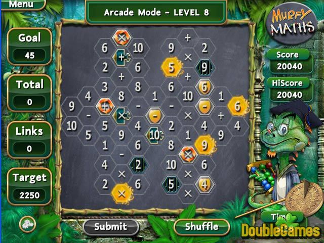 Izmēģini savas matemātikas prasmes jaunajā sarežģīto uzdevumu spēlē - Murfy Maths! Šī darbību-iepakota mīkla ļaus tev pārvarēt dažas matemātikas problēmas. Savāc numurus un izmanto simbolus, lai risinātu dažādus izaicinājošos uzdevumus tur. Izvēlies arkādi, zibeņturnīru vai misijas režīmu, lai izveidotu spēli vairāk piemērotu tev. Ar jauno brīvi lejupielādējamo spēli aritmētika var būt patiesi aizraujoša. Spēle Murfy Maths un baudi tās grūtas mīklas! Vai tu spēsi atrisināt visas šīs mīklas pirms tavs laiks būs beidzies?