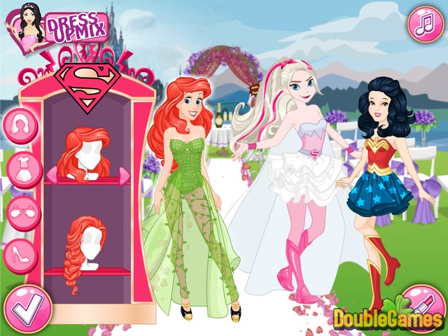 Ir daudz jautrības spēlē jaunu bezmaksas tiešsaistes princese modes spēli Princess Superhero Wedding! Princeses dodas uz kāzu puse, un viņi vēlas, lai būtu stilu kā superheros. Bet problēma ir tā, ka viņi tiešām nezinu, kā to izdarīt, un to, ko drēbes izvēlēties. Vai jūs varat palīdzēt viņiem sakārtot lietas? Tie būs tik pateicīgs par jūsu palīdzību tā kā pasteidzies, demonstrēt savu labāko dizaineru prasmes un kleitu tos!