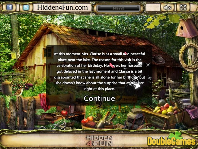 Laipni lūdzam uz jauno izaicinājumu un apbrīnojamo tiešsaistes spēli ar nosaukumu Secret Of The Lake! Šodien ir Mrs Clarise ir dzimšanas diena, ka viņa gaidīja tik ilgi. Viņa nolēma apmeklēt mierīgu un gudrs vieta netālu no ezera un atzīmētu šo dienu tur. Viņas mīļotais vīrs bija vajadzēja būt kopā ar viņu, bet viņš pēkšņi pazuda. Poor Mrs Clarise nav ne jausmas par pārsteigumu viņas vīrs ir pieņemšanai par viņu. Izpētīt skaistas vietas, savākt interesantus priekšmetus un uzzināt par pārsteigumu. Play Secret Of The Lake tieši tagad un pilnīgi bez maksas.