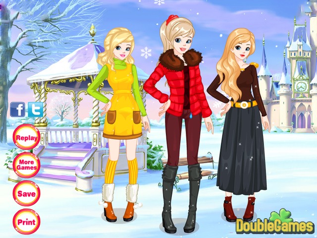 Ziema jau klāt! Tātad, ir pienācis laiks meklēt jaunas drēbes, vai ne? Spēlēt jaunu modes tiešsaistes spēli Ziemas Besties Dressup! Satiec trīs labākos draugus Lily, Sāra un Nina kuri zina, kā palikt silts un izskatīties stilīgi un pasakains, tajā pašā laikā. Izbraukšana jaunu skaistu ziemas kleitas, svārki, izlases piederumus un visu cepures un apavu veidus. Kad esat noplūktiem, varat palīdzēt katrai meitenei radīt visvairāk krāšņs izskatu! Ir jautri ar Sarah, Lily un Nina, spēlēt ziemas Besties Dressup jau tagad par brīvu un uzzināt vairāk ziemas modes!